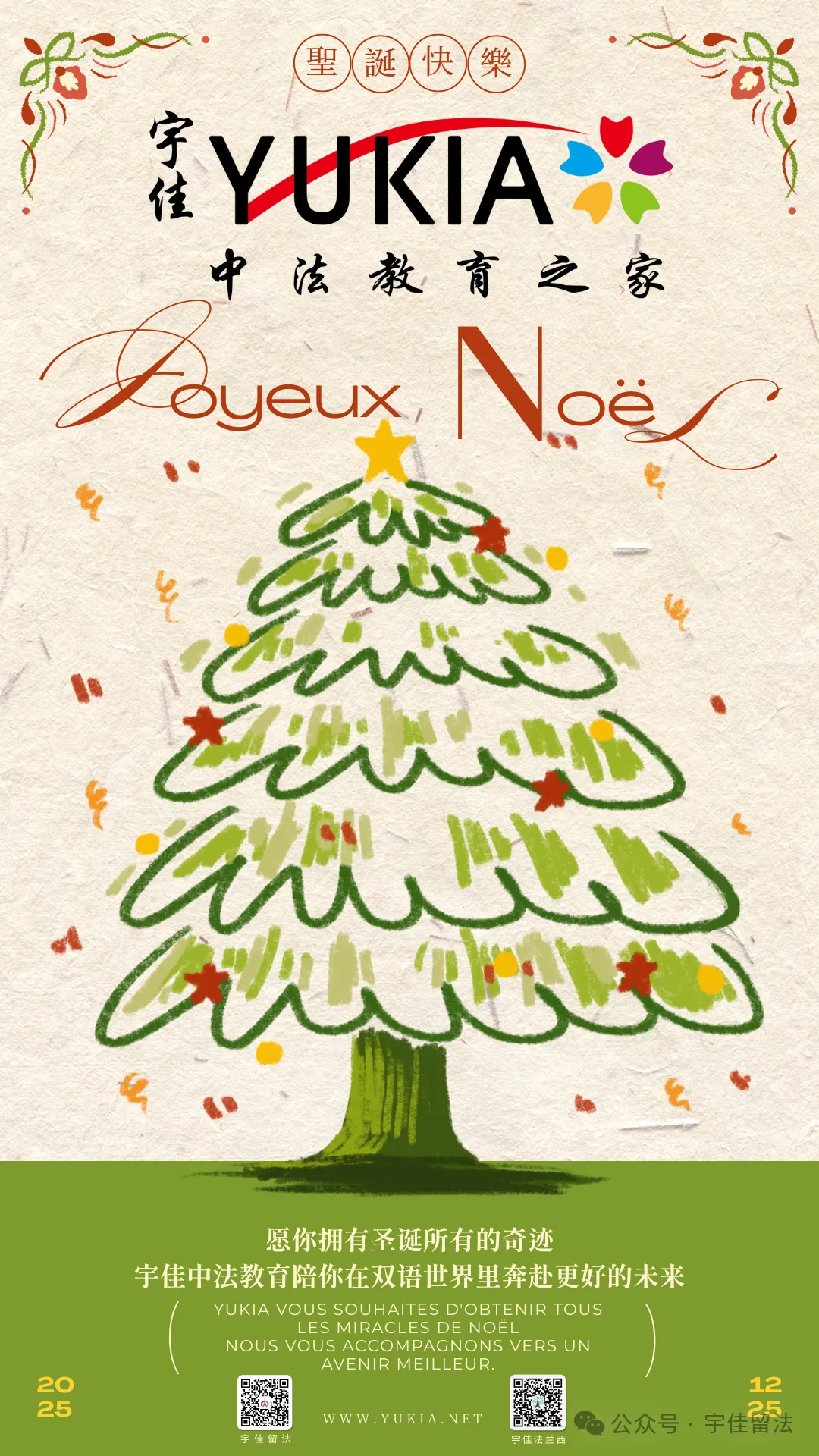 圣诞的钟声即将敲响,愿这份专属的浪漫与温暖,伴随你度过整个冬日。宇佳中法教育将始终与你同行,在双语世界里,陪你探索更多文化之美,收获成长的喜悦!